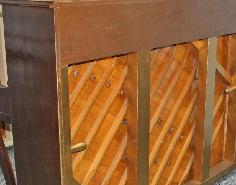 Pianoforte costruito da nostro Padre Gastone, anno 1959, Meccanica Renner, Tavola Armonica Val Di Fiemme, Mogano gomma lacca, altezza cm 114, lunghezza cm 152, sonorità tedesca